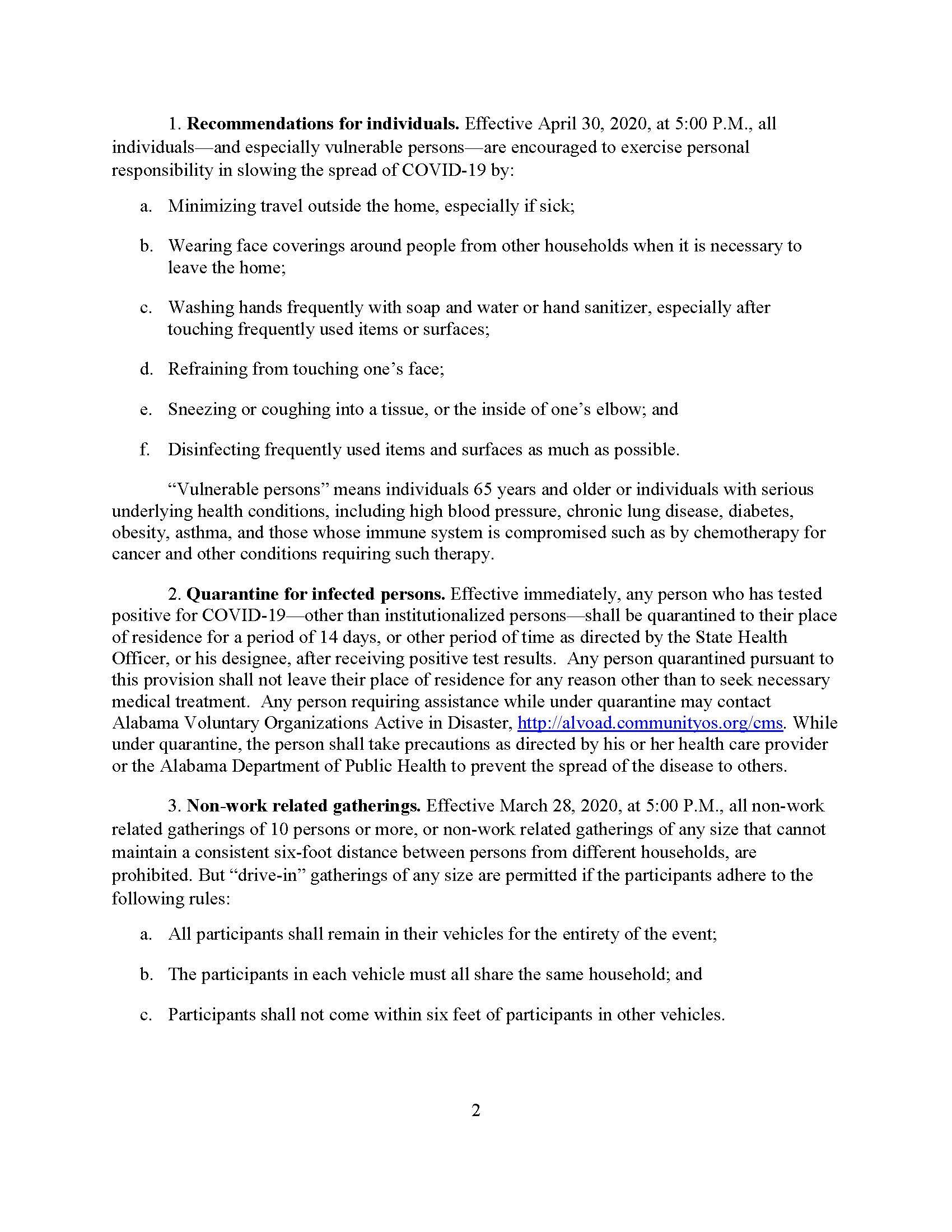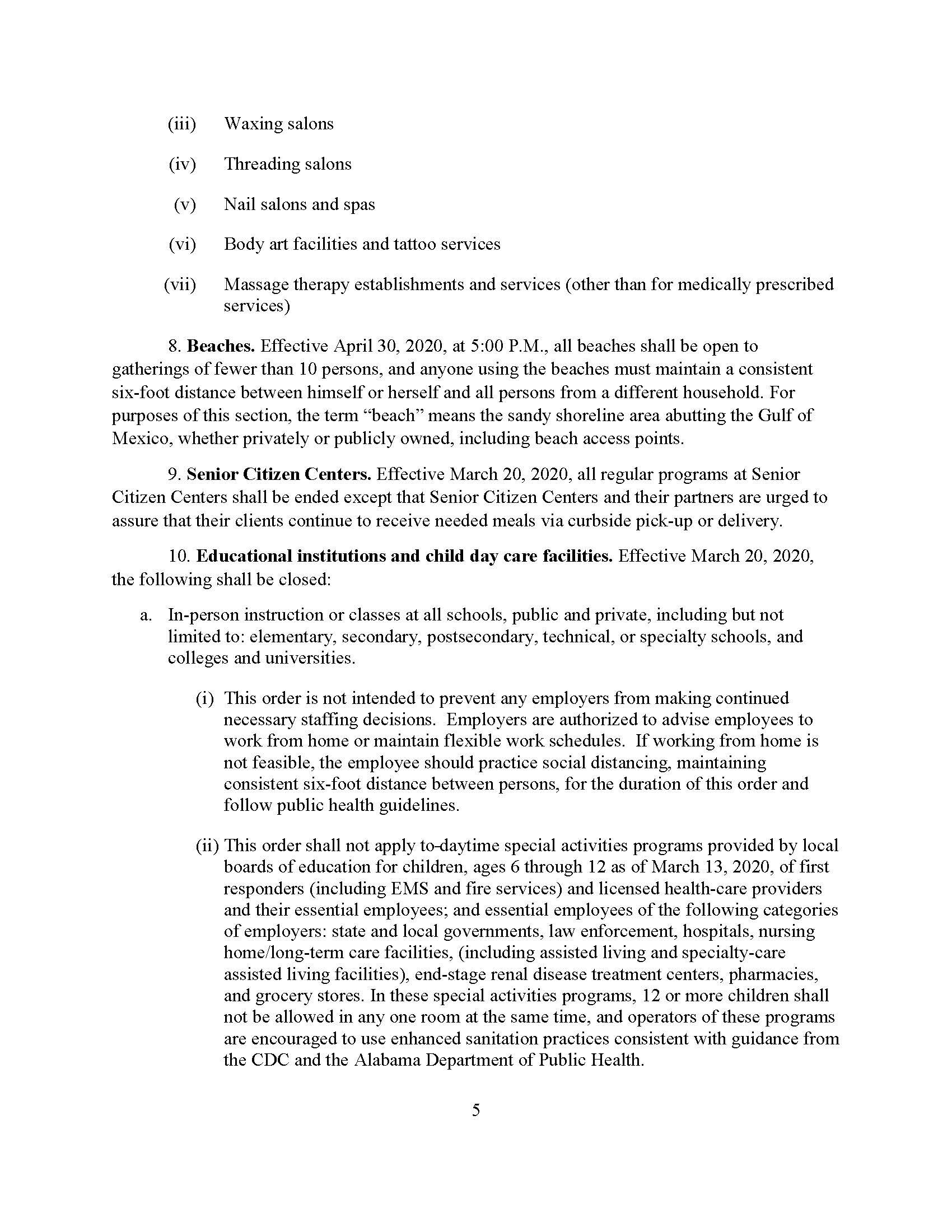 Friends, Below is the State’s new health order for April 30th till May 15th. It is very much as I expected and predicted with regard to most businesses, retail stores, non-emergency medical procedures and our beaches. I was surprised that “close contact service providers” such as salons and barber shops, as well as gyms and fitness centers were not allowed to open at all. I had expected they would be allowed to open, but with more extensive restrictions and limitations. I also was surprised that restaurants were not allowed to open for in-person dining if they could adequately do so and meet restrictions. Based on what I know, I fully expect these businesses to be able to open on May 15th with restrictions if our numbers continue to go in the manner we expect.